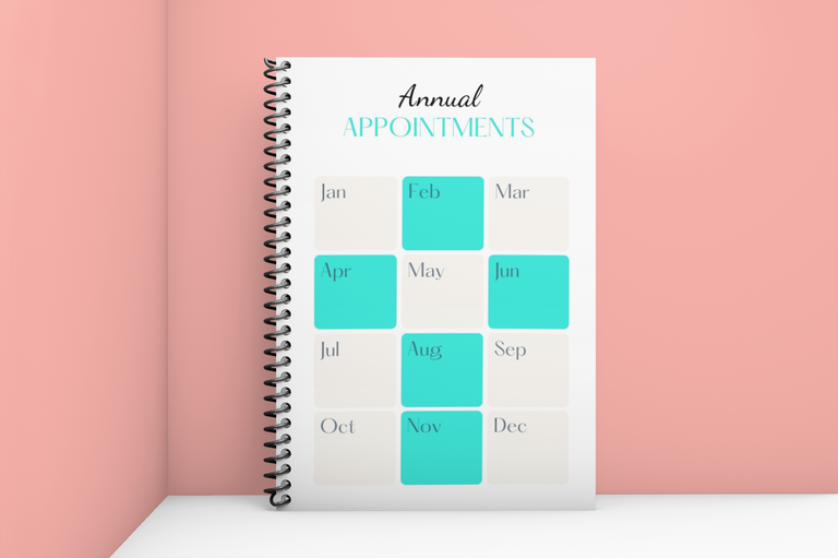 Never miss an annual appointment with the tracker set in the front of your caregiver planner.